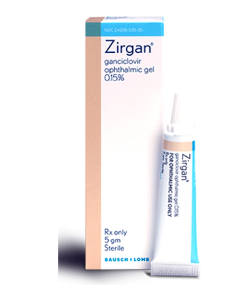 Ganciclovir ophthalmic gel (Zirgan) is a topical ophthalmic antiviral that is indicated for the treatment of acute herpetic keratitis (dendritic ulcers).