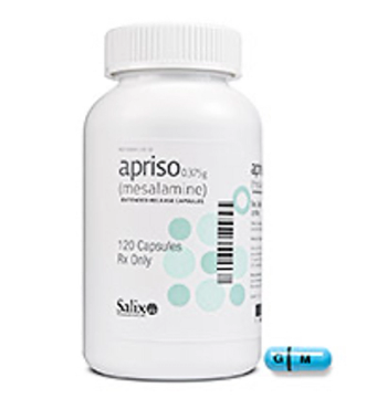 Mesalamine (Apriso) is a locally acting aminosalicylate indicated to treat and prevent flare-ups of ulcerative colitis.